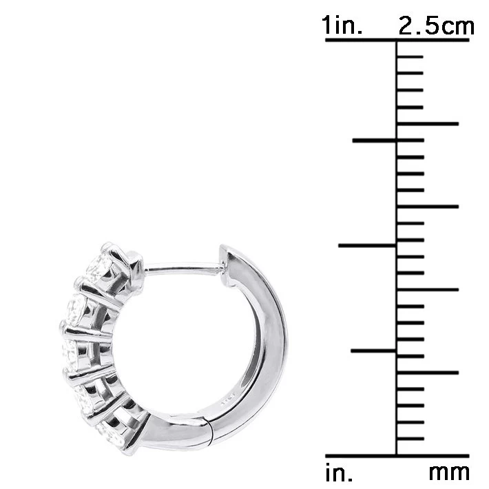 1/2 Inch Classic Huggie Hoop Earrings 14K White Gold With Round Diamonds 1 Carat