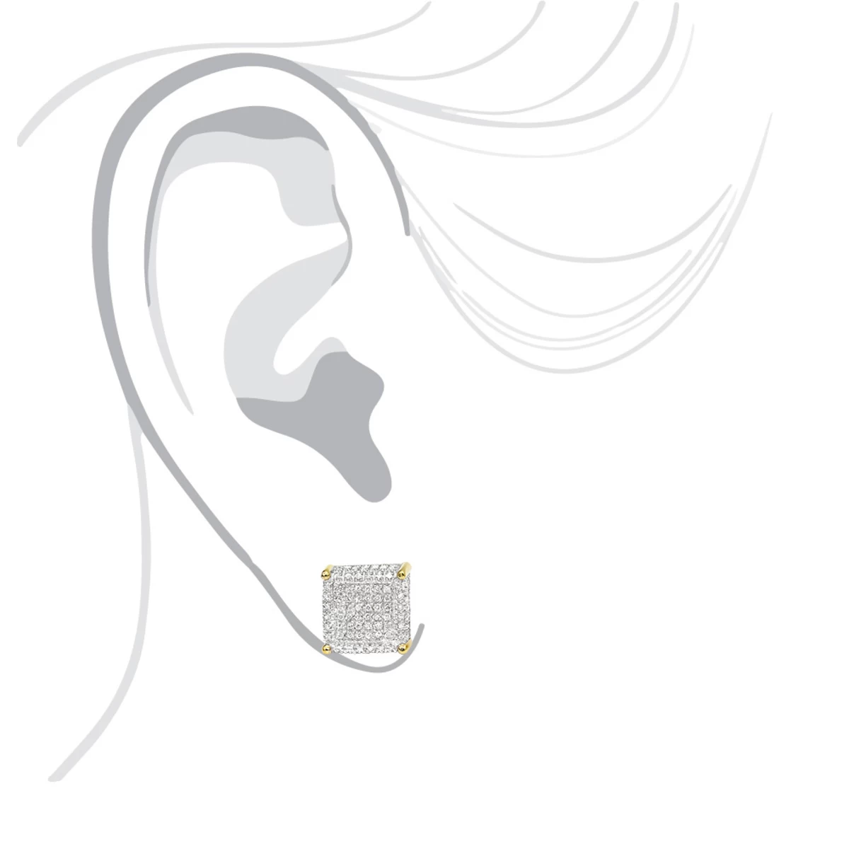 1 Carat Pave Diamond Stud Earrings 10K Yellow Gold Cube Shape