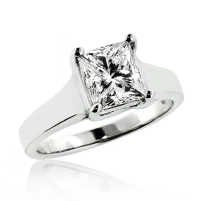 1 Stone Solitaire Princess Cut Diamond Engagement Ring 1.5ct 14K White Gold