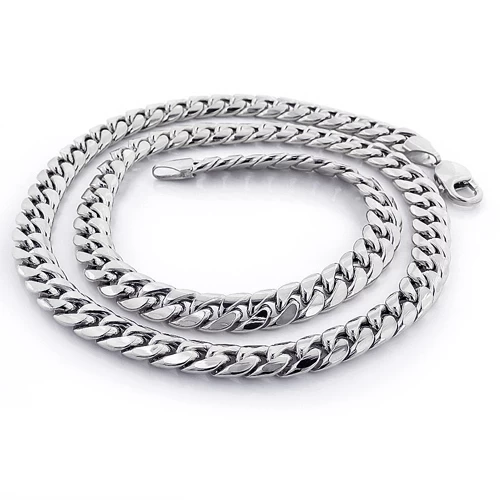 This Miami Cuban Link Chain in 10K lustrous White Gold weighs approximately 65 grams and is 11mm wide and starts at 22 in long. This beautiful chain is secured with a lobster claw clasp and is available in 10K white, yellow and rose gold and in different lengths.