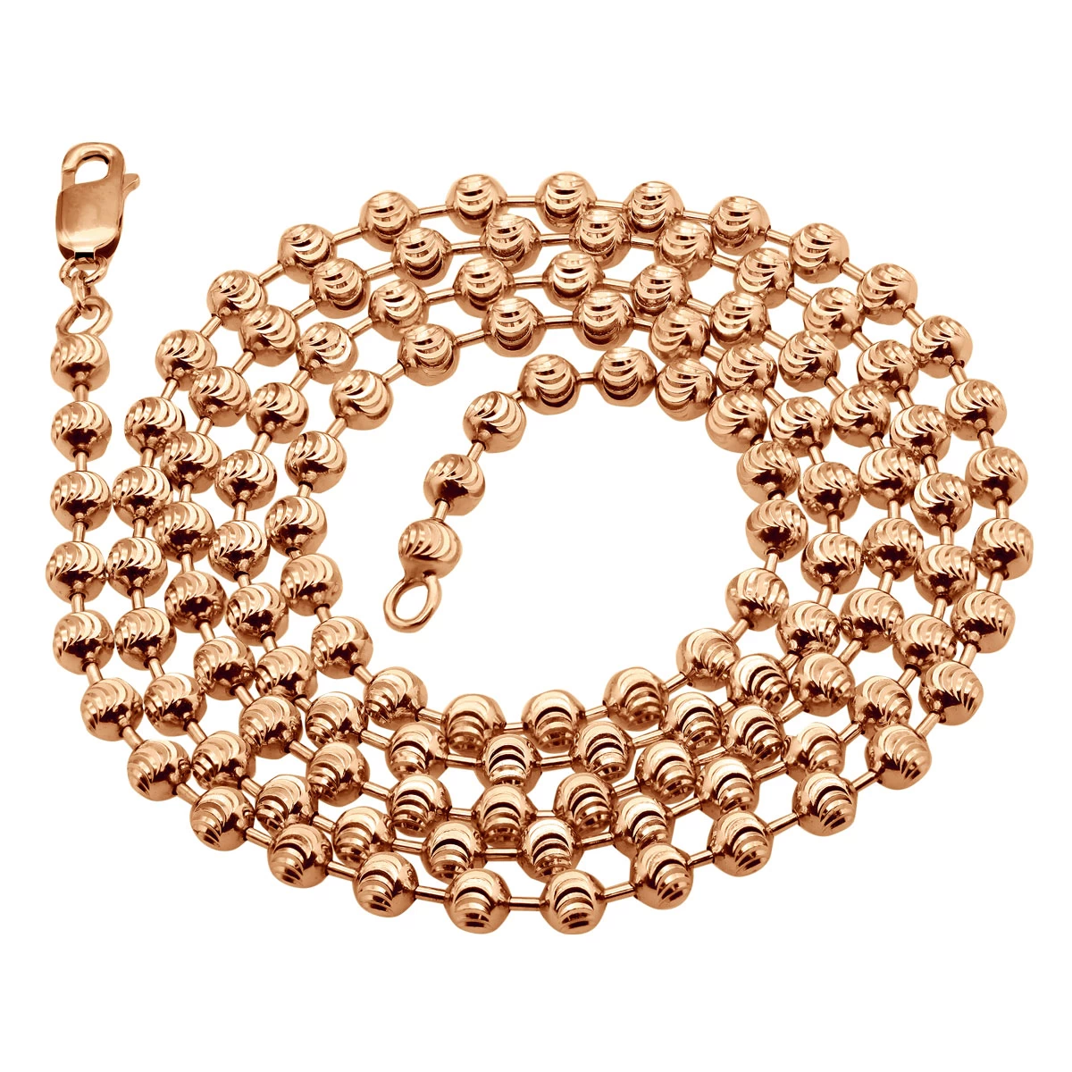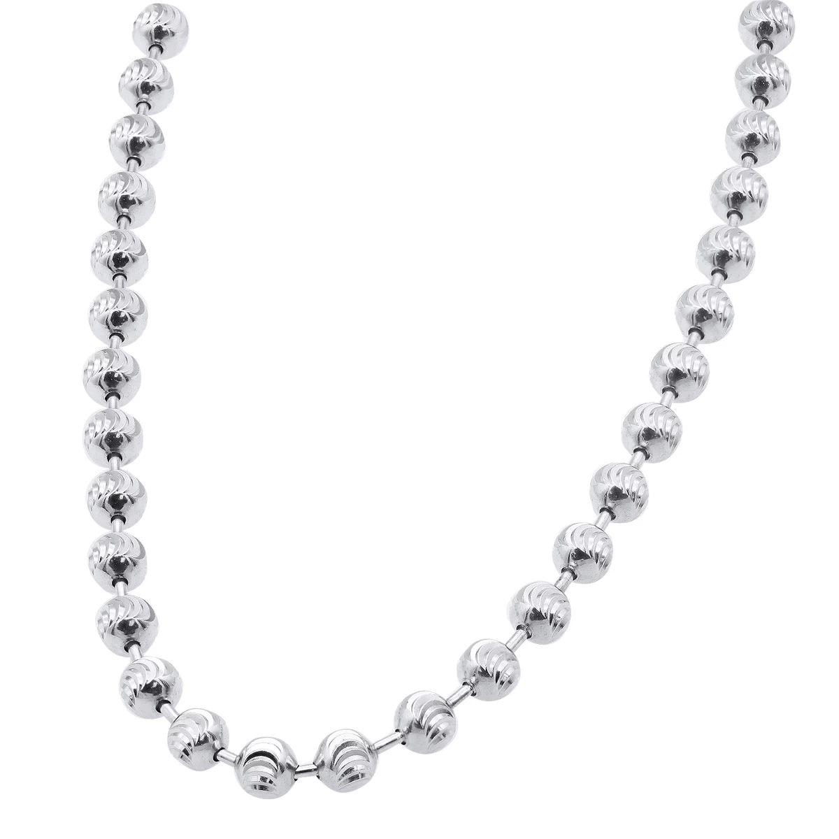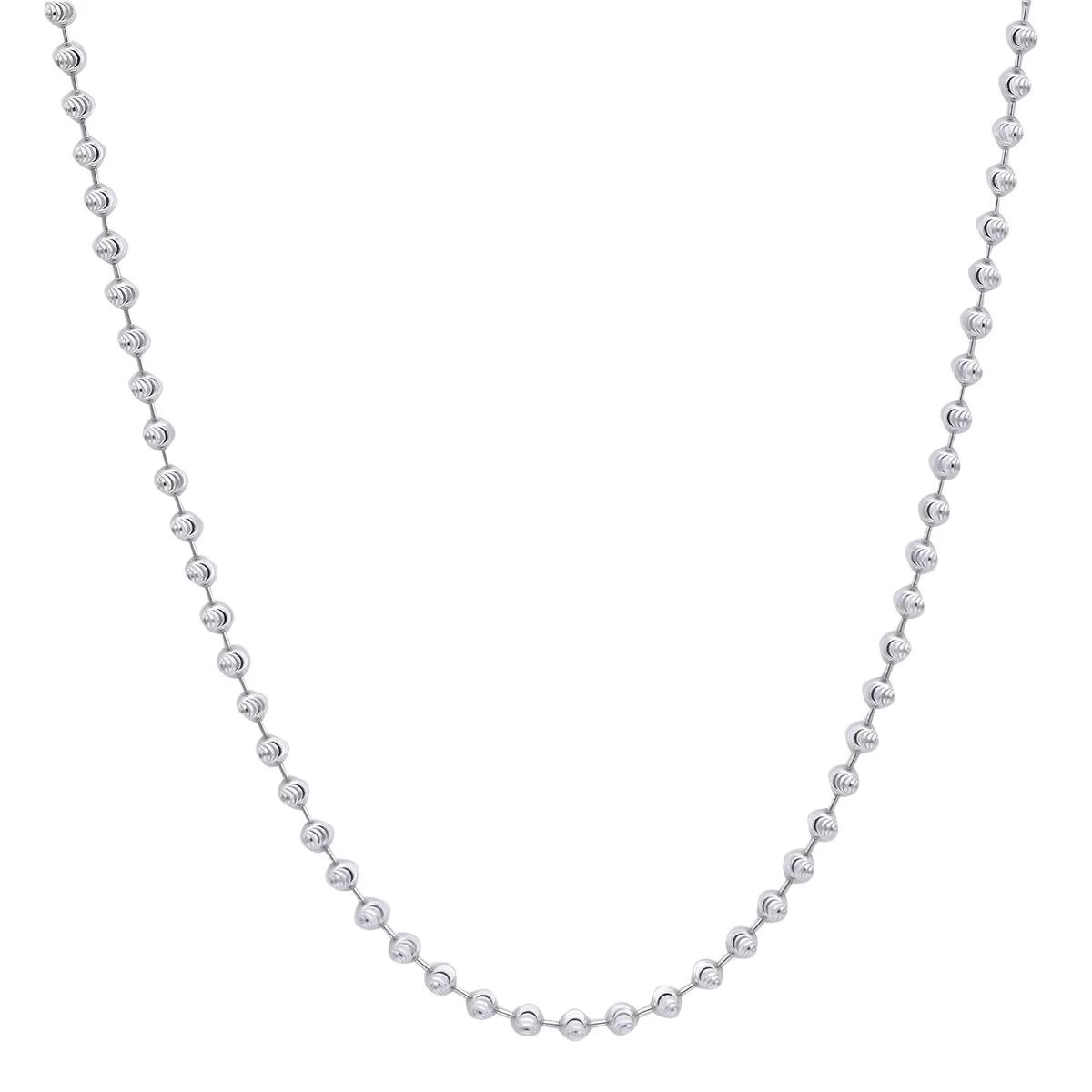This 10K White Gold Moon Cut Chain is 5mm wide and is secured with a lobster claw clasp. Featuring a luxurious bright polished finish for extra shine, this textured ball chain is available in 10K white, yellow and rose gold and in different chain lengths.