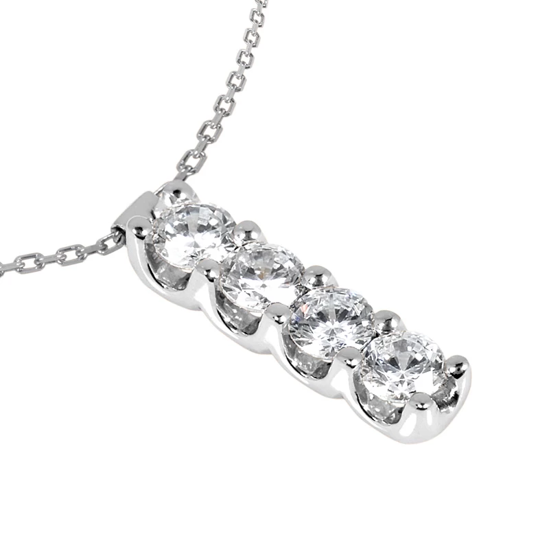14K White Gold 4 Stone Diamond Journey Necklace 0.40ct