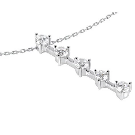 14K White Gold 5 Stone 4 Prong Set Diamond Journey Pendant 0.50ct
