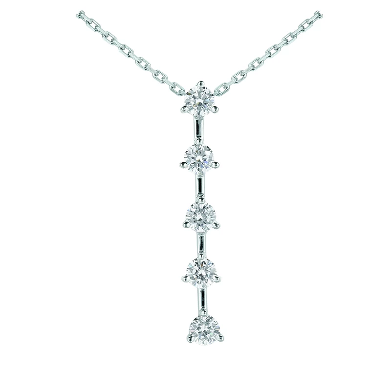 14K White Gold 5 Stone Diamond Journey Necklace 1.75ct