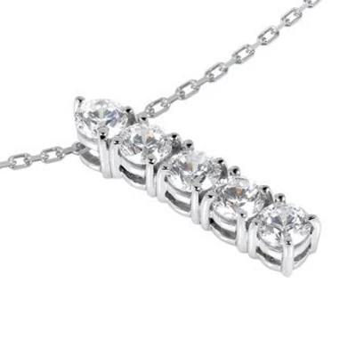 14K White Gold 5 Stone Diamond Journey Pendant 1.50ct