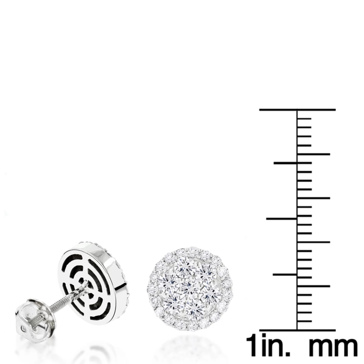 14K White Gold Cluster Diamond Stud Earrings 1.21ct