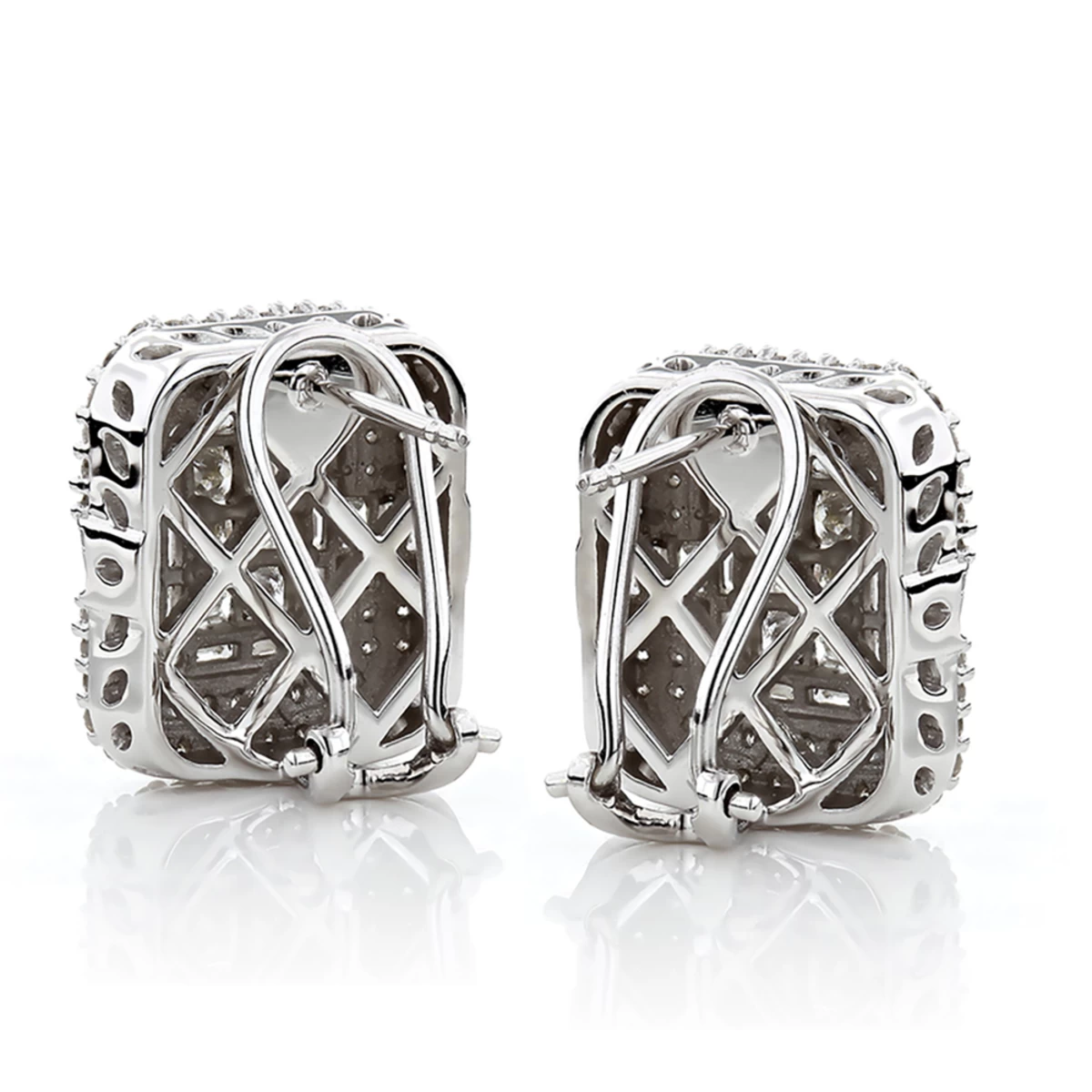 14K White Gold Designer Diamond Earrings Multi-Tier 2.48ct