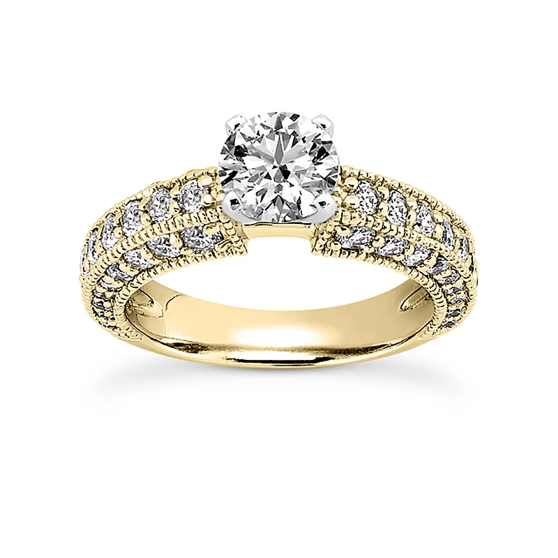 This 14K Gold Designer Diamond Engagement Ring showcases a 0.50 carat round diamond in the center and 0.81 carats of round diamonds on the sides for a total of 1.31 carats of dazzling diamonds and is available in Platinum, 18k or 14k yellow, rose, white gold, various sizes, and can be customized with any color and quality diamonds. Center diamond can be from 0.50ct to 5ct (gold weight and number of stones may vary). Please note: it will take us 3-5 business days to make this ring for you so please plan accordingly. Please contact us at 212-398-3123 if your size or desired option is not listed.