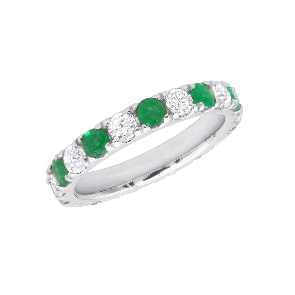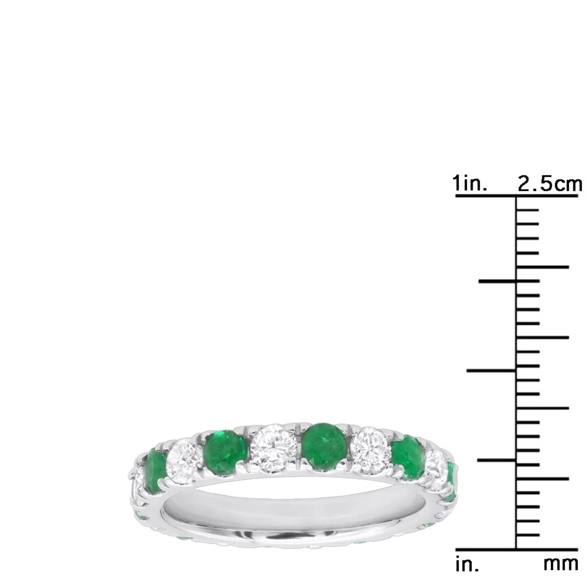 14K White Gold Diamond & Emerald Eternity Band For Women 2 Carat Anniversary Ring