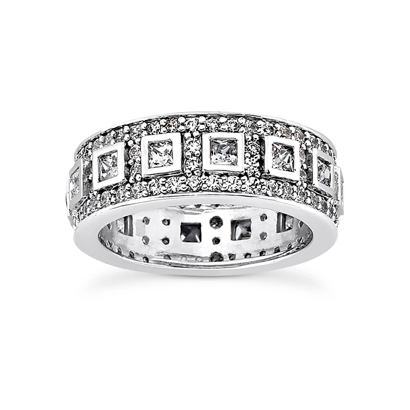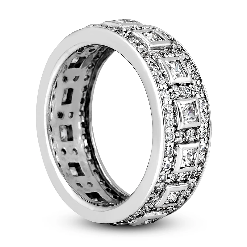 This Princess Cut and Round Diamond Eternity Band features 1.12 carats of round diamonds and 0.70 carats of princess cut diamonds for a total of 1.82 carats of diamonds. This diamond eternity band is available in Platinum, 18k or 14k yellow, rose, white gold, various sizes, and can be customized with any color and quality diamonds. Price and description is for a ring in 14k gold and size 6. Please note: it will take us 3-5 business days to make this ring for you so please plan accordingly. Please contact us at 212-398-3123 if your size or desired option is not listed.