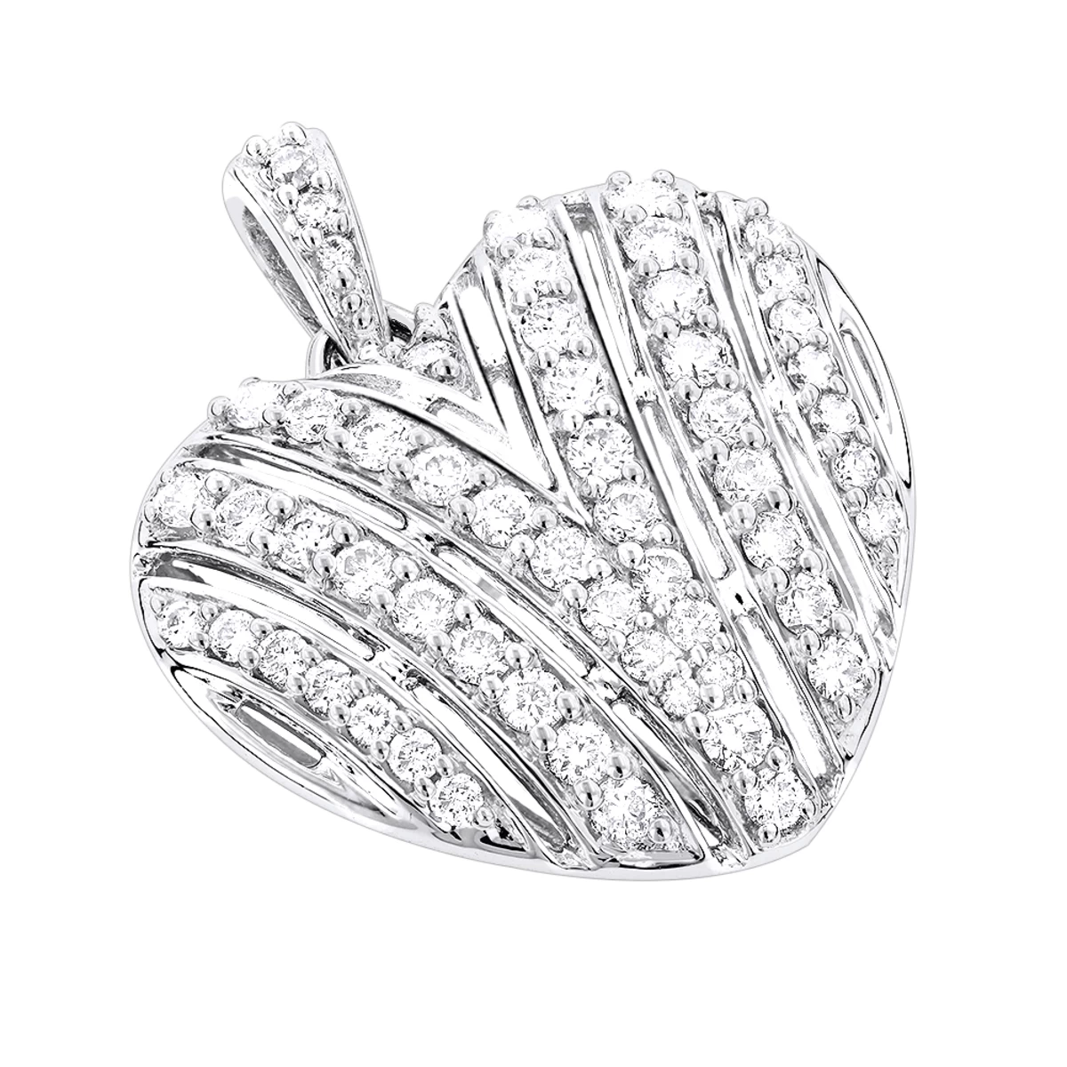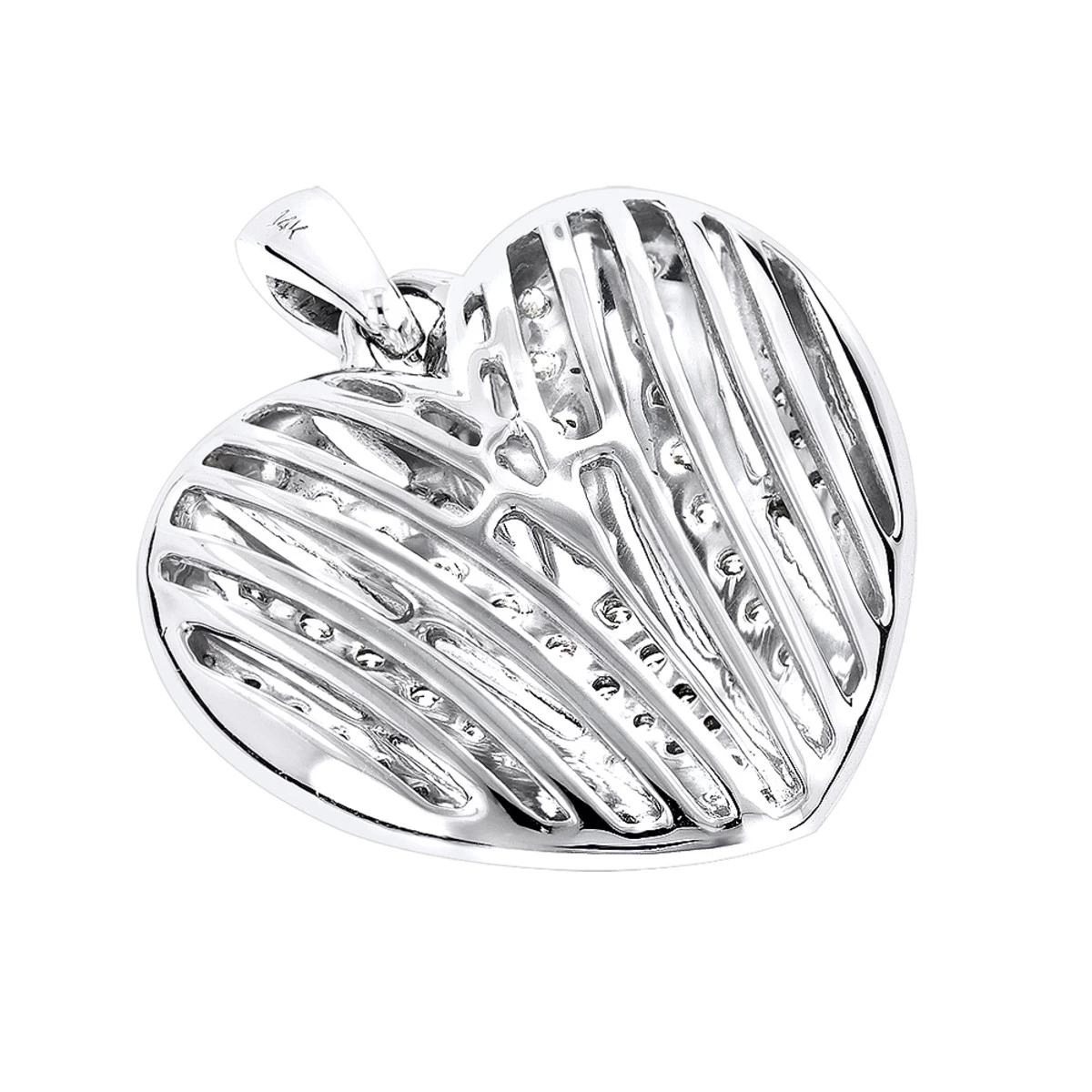 14K White Gold Round Diamonds Designer Heart Shape Pendant 0.42ct