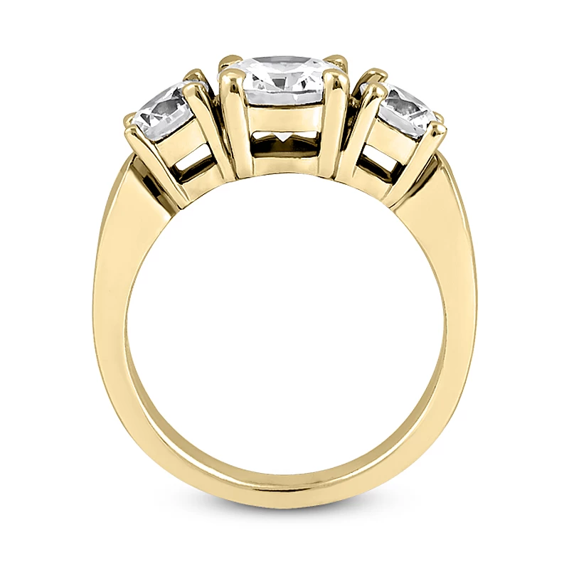 This 14K Gold Diamond Three Stone Engagement Ring showcases a 0.50 carat round diamond in the center and 0.30 carats of round diamonds on the sides for a total of 0.80 carat of dazzling diamonds and is available in Platinum, 18k or 14k yellow, rose, white gold, various sizes, and can be customized with any color and quality diamonds. Center diamond can be from 0.50ct to 3ct (gold weight and number of stones may vary). Please note: it will take us 3-5 business days to make this ring for you so please plan accordingly. Please contact us at 212-398-3123 if your size or desired option is not listed.
