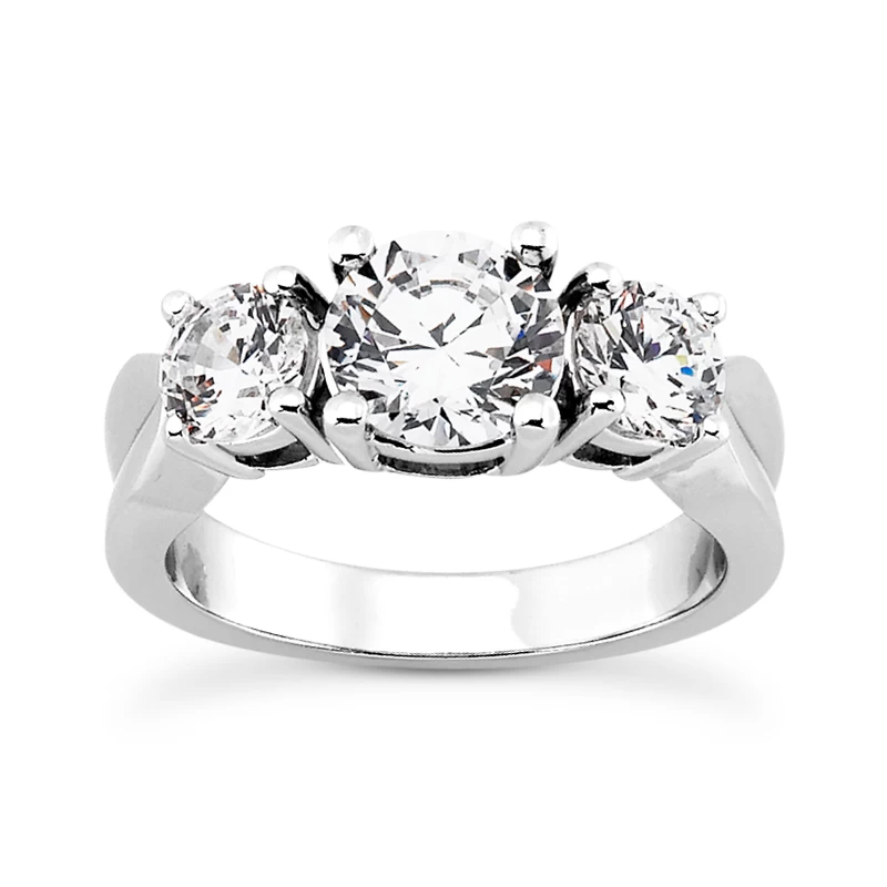 14K White Gold Diamond Three Stone Engagement Ring 0.80ct 3.15mm
