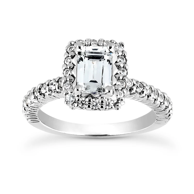 14K White Gold Diamond Unique Engagement Ring 1.13ct 2.4mm
