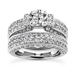 14K White Gold Diamond Unique Engagement Ring Set 2.57ct