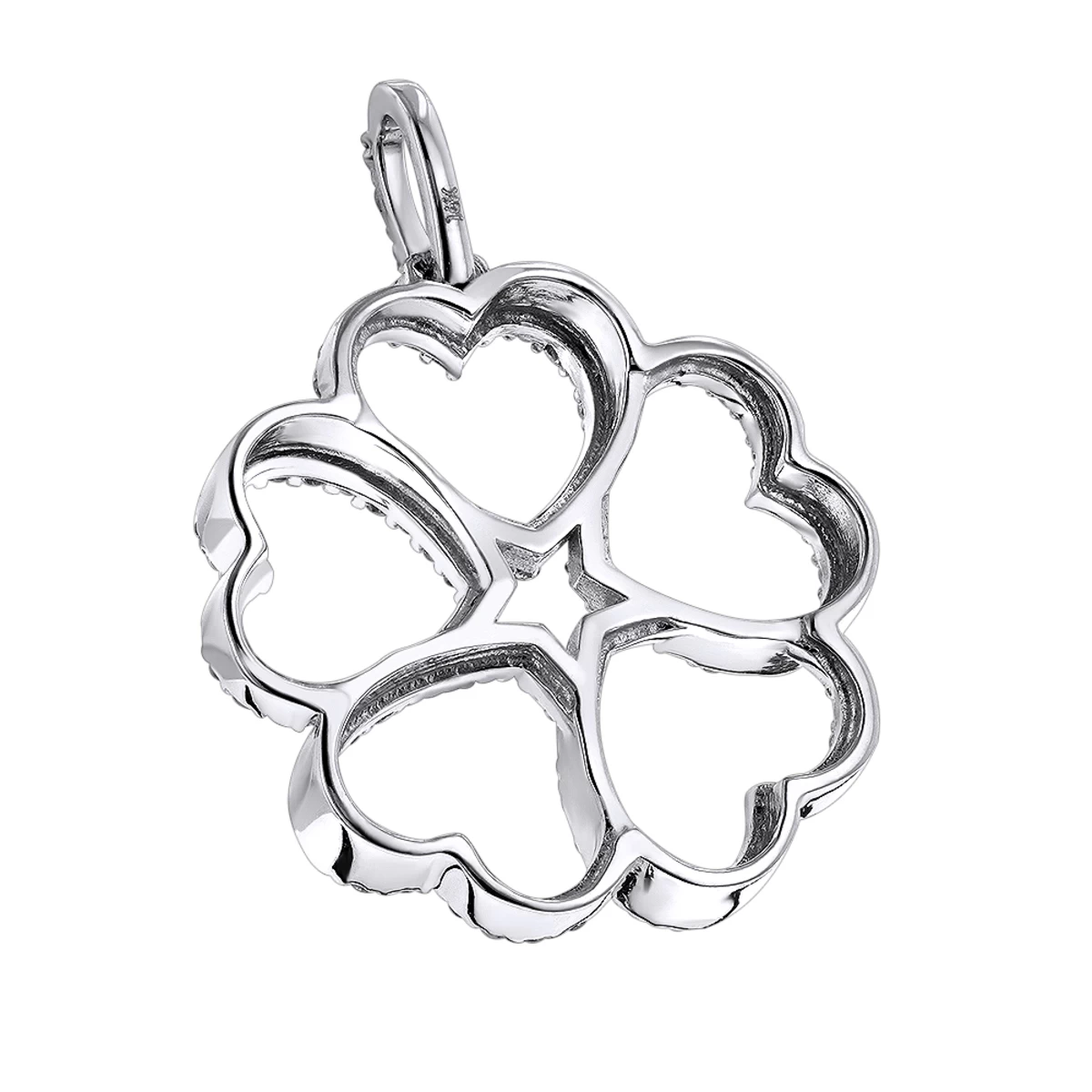14K White Gold Multi Heart Diamond Pendant For Women Flower Design 0.35ct