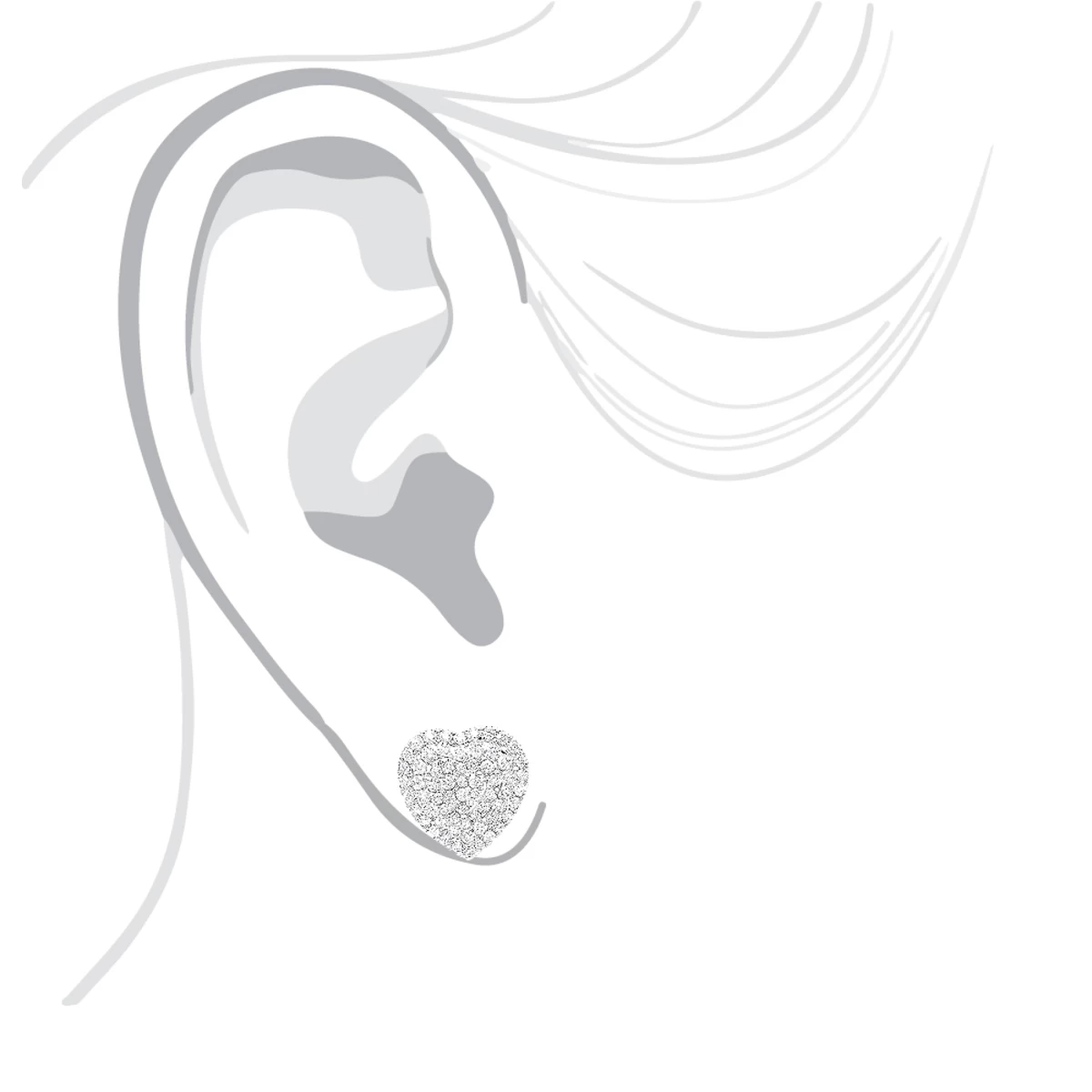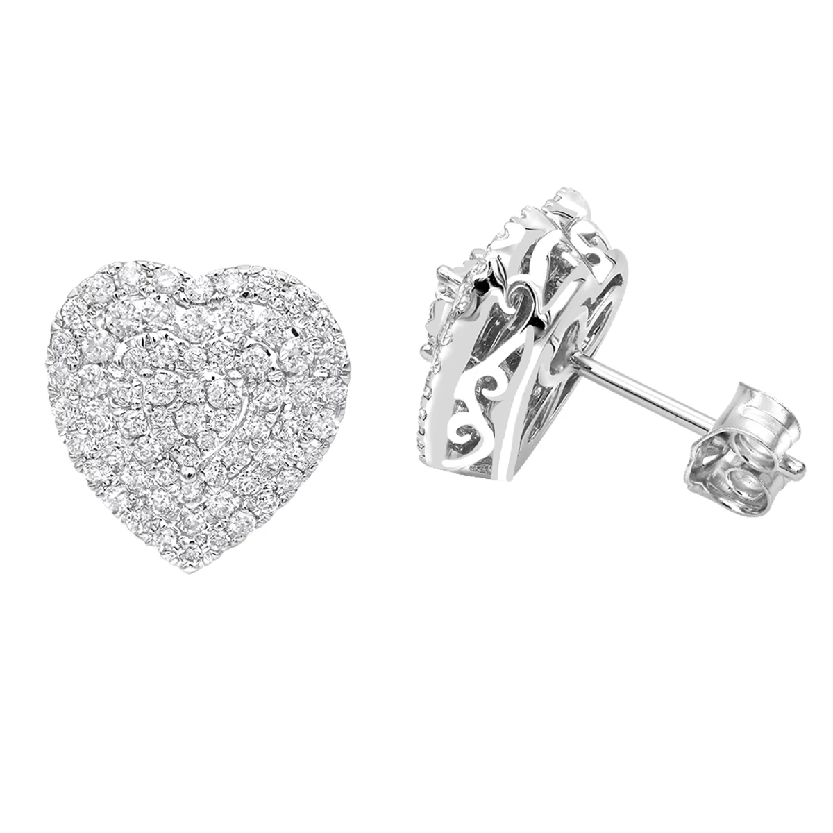 14K White Gold Pave Diamond Heart Earrings For Women 1 Carat Diamond Studs