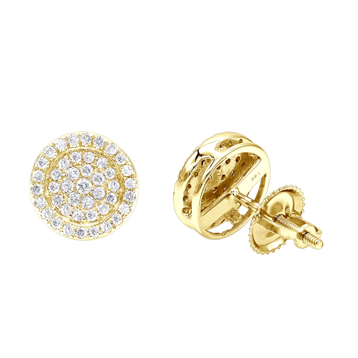 These 14K Gold Pave Round Diamond Stud Earrings by Luxurman showcase 0.35 carats of sparkling round cut genuine diamonds. Featuring a classy design and a highly polished gold finish, these pave diamond earrings studs are available in 14K white gold, yellow gold and rose gold.