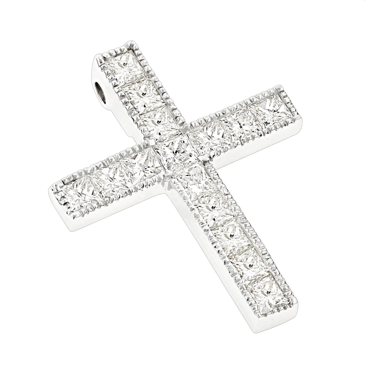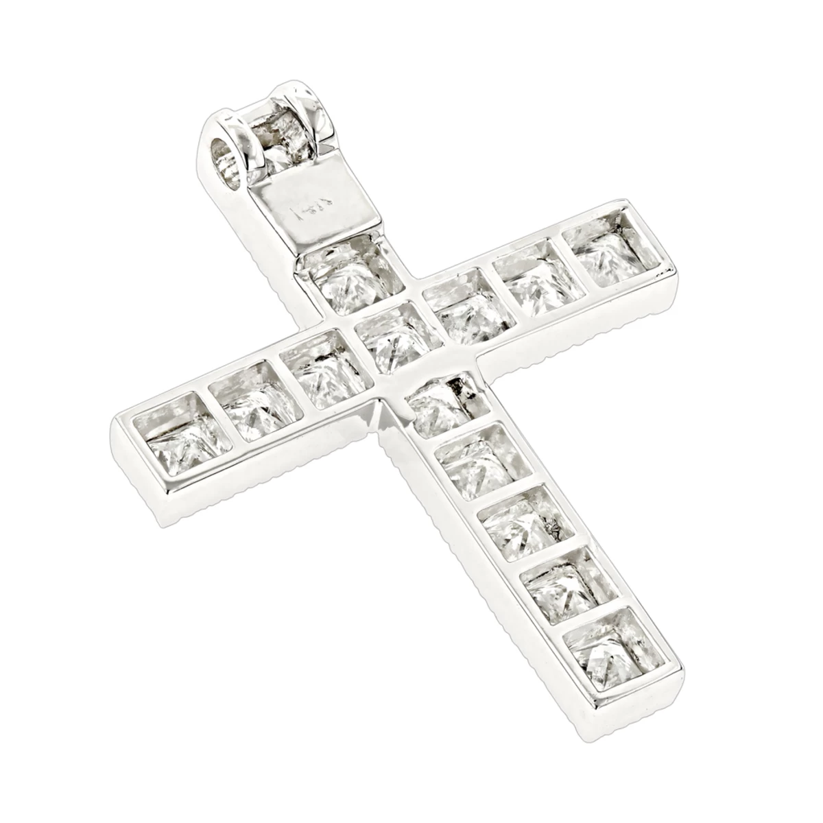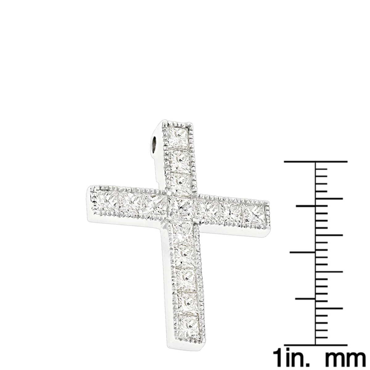 14K White Gold Princess Cut Diamond Cross Necklace 2.55ct
