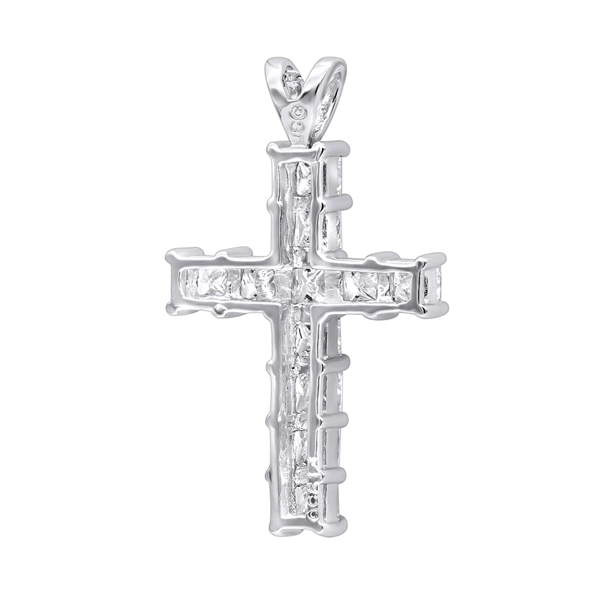 14K White Gold Princess Cut Diamond Cross Pendant 2.20ct