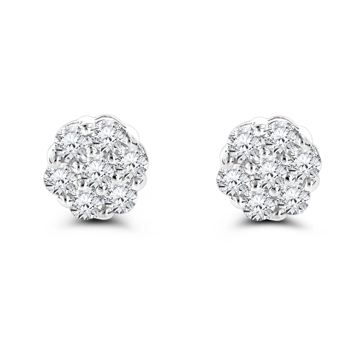 14K White Gold Prong Round Diamond Clusters Earrings 1ct Studs