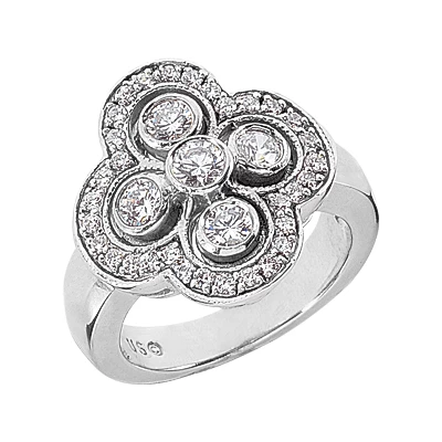 14K White Gold Right Hand Ladies Diamond Ring 0.86ct