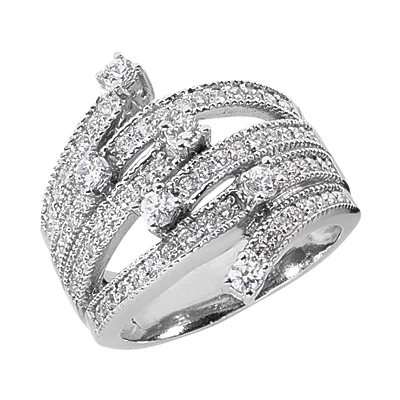 14K White Gold Right Hand Ladies Diamond Ring 0.94ct