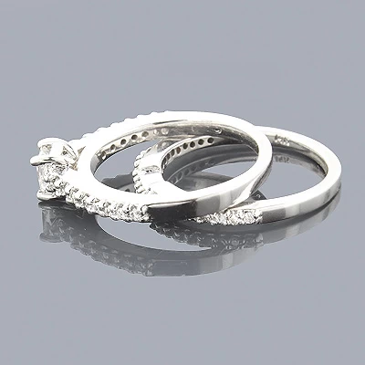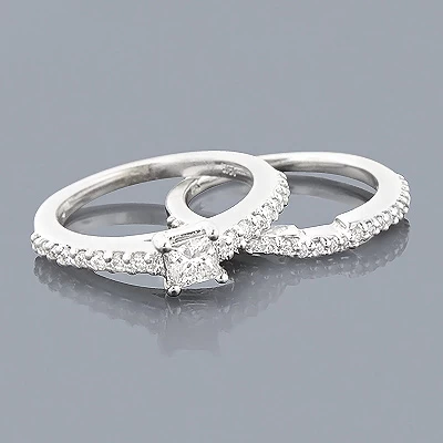14K White Gold Round And Princess Cut Diamond Engagement Ring Set 0.84ct
