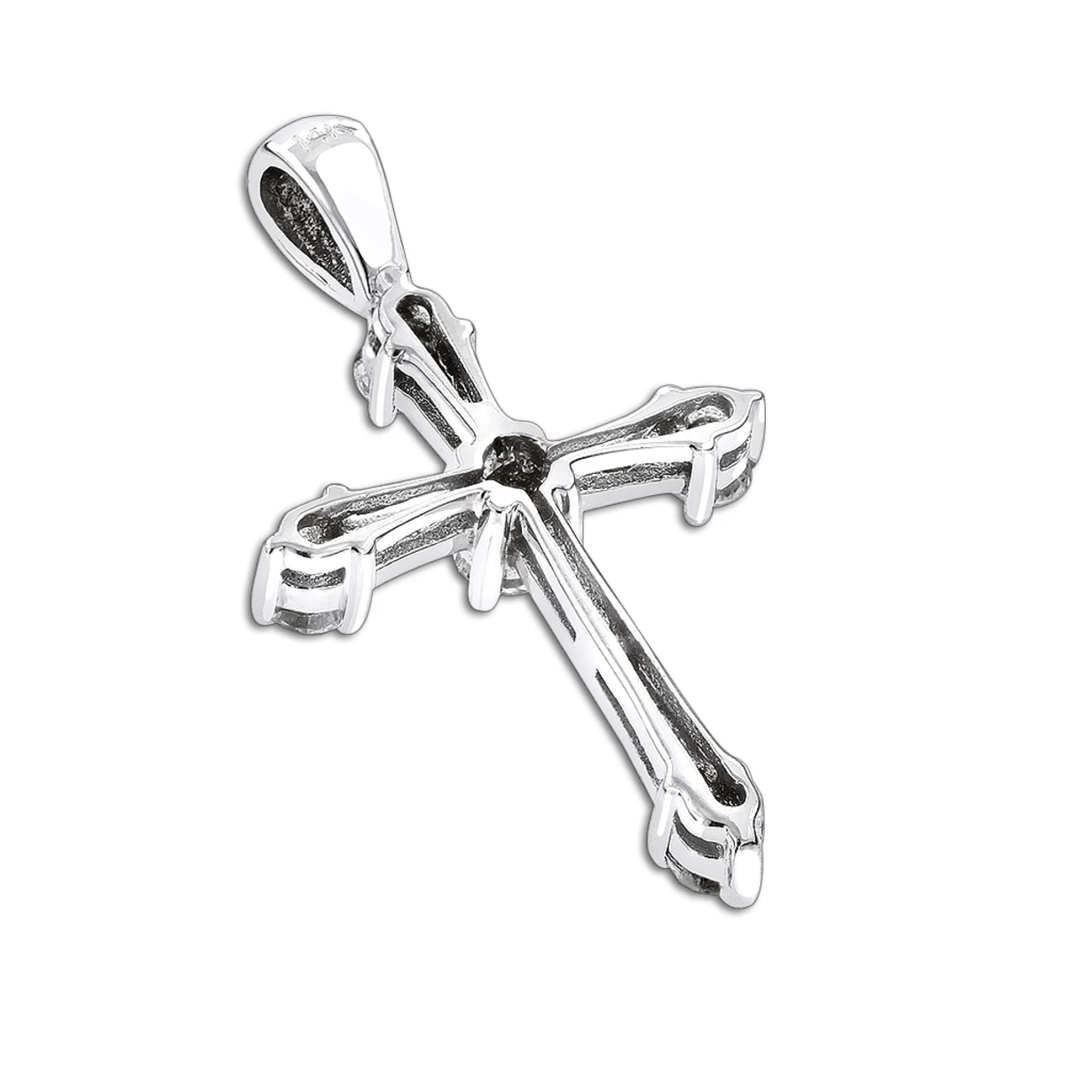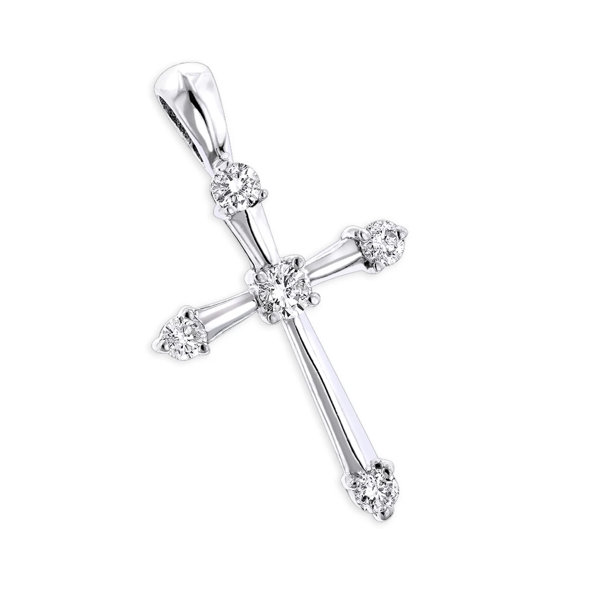 14K White Gold Round Diamond Cross Pendant 0.33ct 17mm 5 Stones
