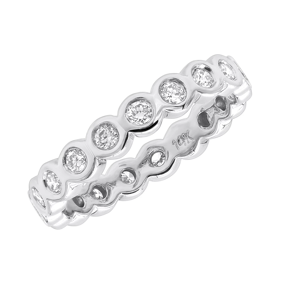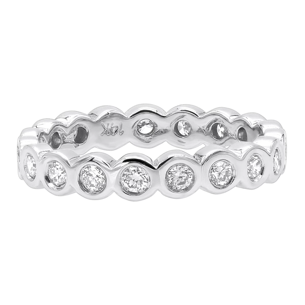 14K White Gold Round Diamond Eternity Band Bezel Set Diamonds 1.60ct