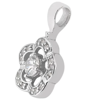 14K White Gold Round Diamond Flower Pendant 0.50ct 13mm