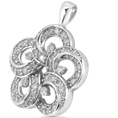 14K White Gold Round Diamond Flower Pendant 0.55ct 18.2mm