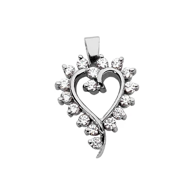 14K White Gold Round Diamond Heart Pendant 0.51ct