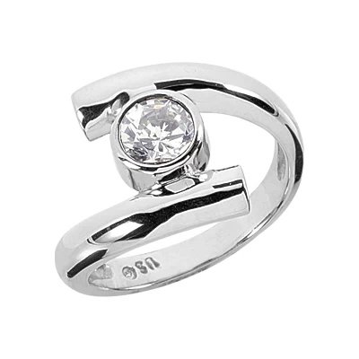 14K White Gold Round Diamond Ladies Ring 0.75ct 14.9mm