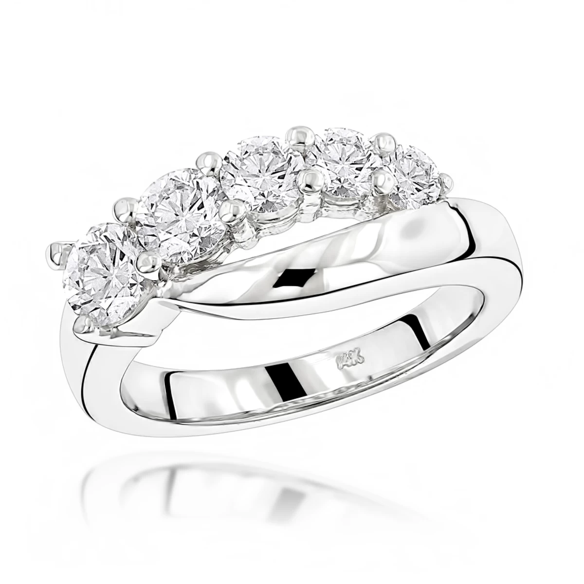 14K White Gold Round Diamond Ladies Ring 1.25ct 8.3mm