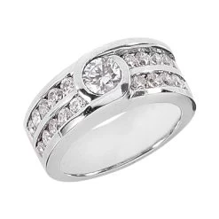 14K White Gold Round Diamond Ladies Ring 1.50ct 8.2mm