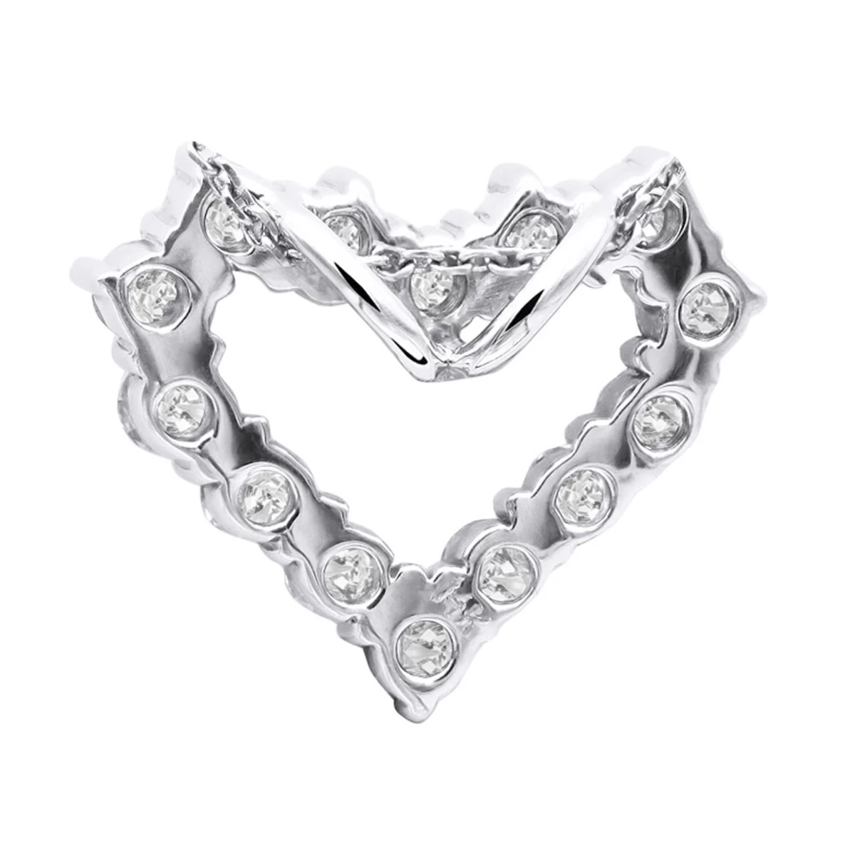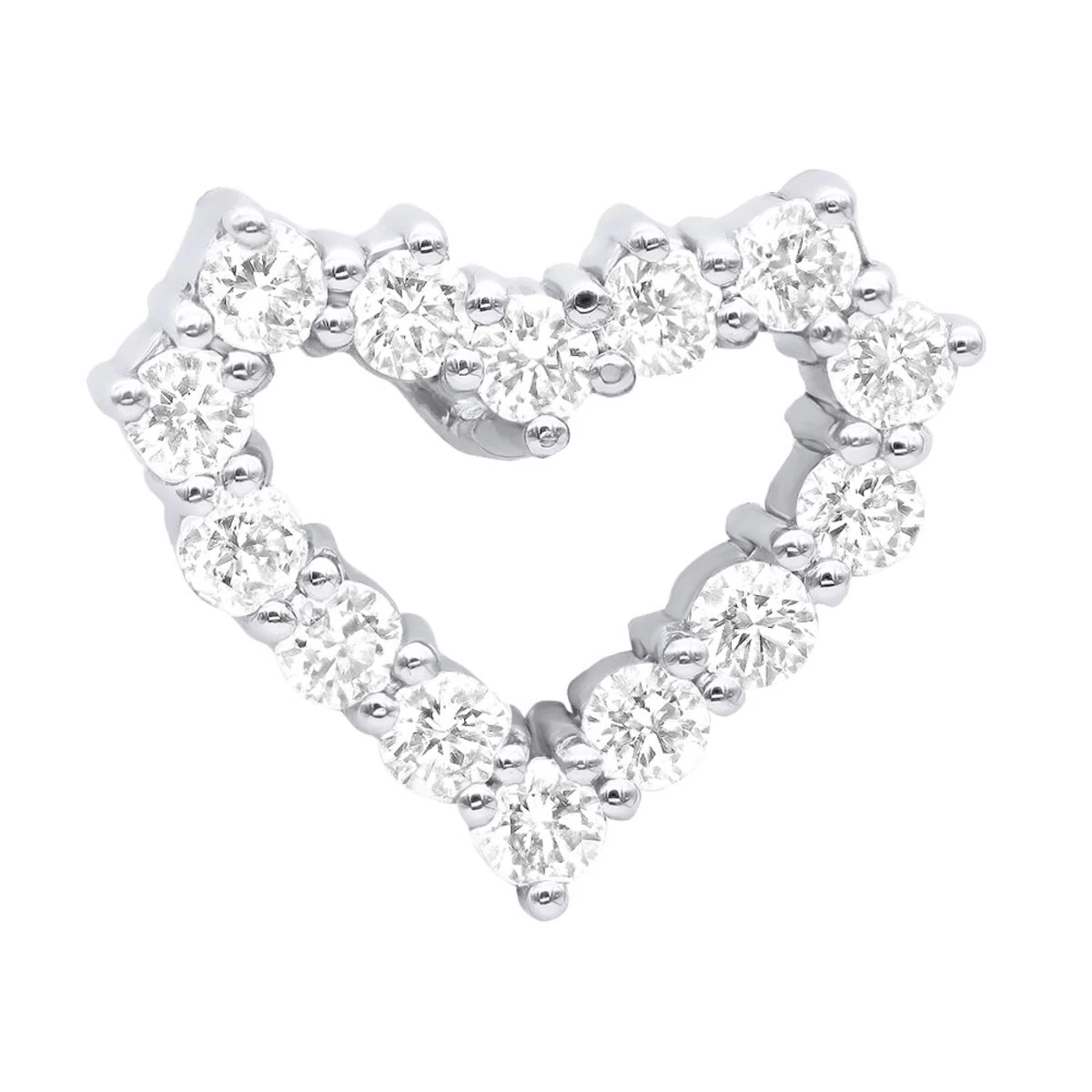 14K White Gold Round Diamond Open Heart Pendant 1.26ct Hidden Bail