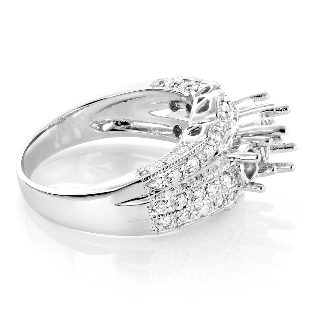 14K White Gold Three Stone Diamond Engagement Ring Setting 0.46ct