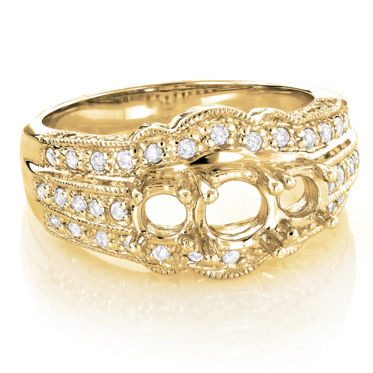 This 14K Three Stone Diamond Engagement Ring Setting weighs approximately 7 grams and showcases 0.46 carats of sparkling round diamonds and is available in Platinum, 18k or 14k yellow, rose, white gold, various sizes, and can be customized with any color and quality diamonds. This ring can accommodate from 0.30ct to 0.75ct round stone as a center and from 0.10ct to 0.30ct round side stones (gold weight and number and carat weight of side stones may vary). Please note: This listing is for engagement ring mounting only, center diamond is for illustration purposes only and is sold separately. This mounting is priced to fit up to 0.75ct center stone. If you need it to fit a larger stone please contact us toll free in USA: 1-866-423-6262 or outside USA: 212-398-3123 prior to making a purchase as the price will vary depending on the size of your center stone.