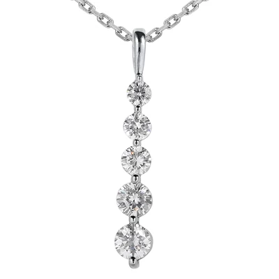 14K White Gold Unique 5 Stone Diamond Journey Pendant 1ct