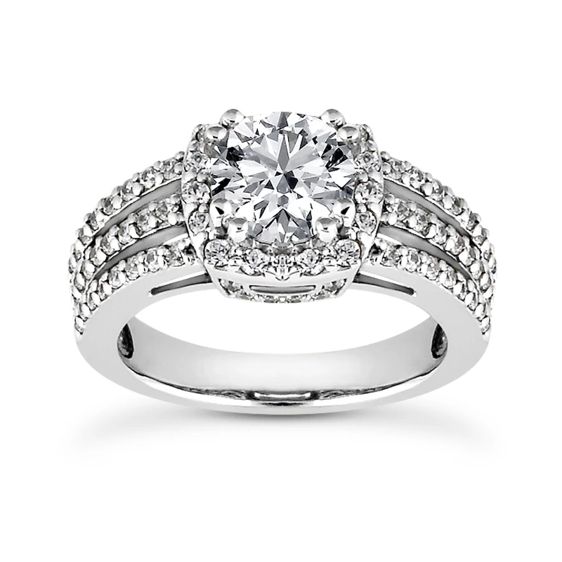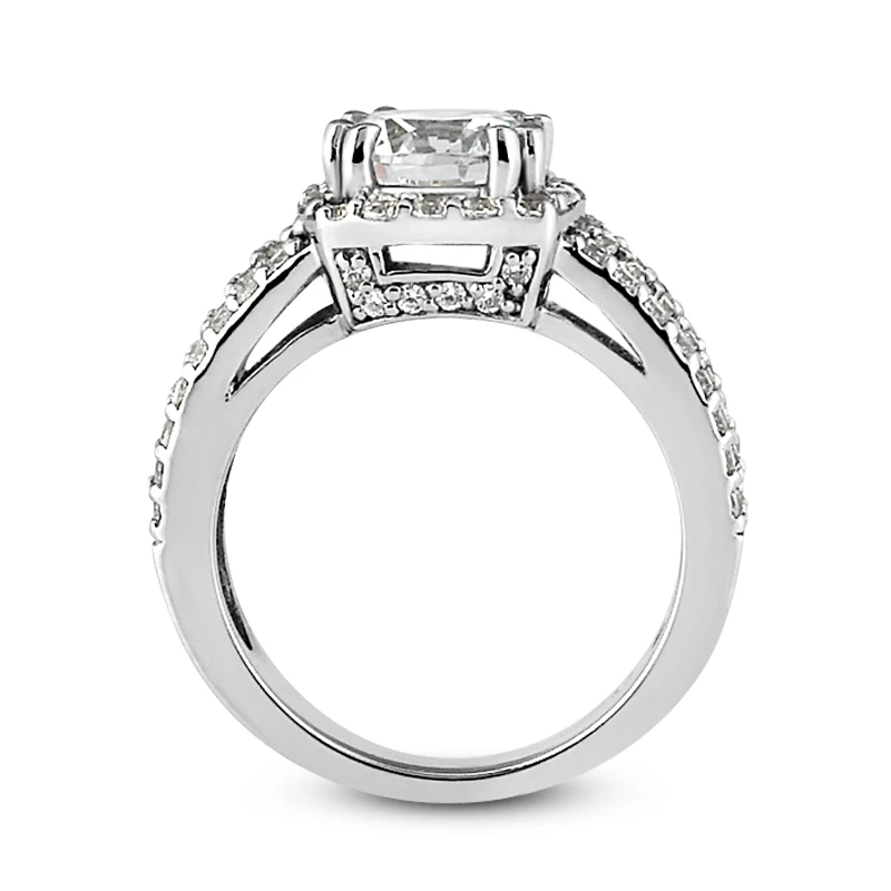 14K White Gold Unique Diamond Engagement Ring 0.92ct 4.8mm