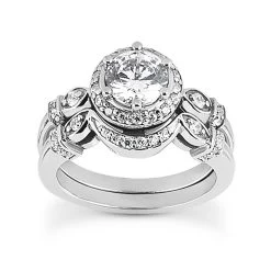 This 14K Gold Unique Diamond Engagement Ring Set consists of an engagement ring mounting and matching band. The mounting showcases 0.18 carats of dazzling round diamonds and can accommodate from 0.50ct to 2ct round stone as a center (gold weight and number and carat weight of side stones may vary). The band showcases 0.07 carats of dazzling round diamonds. Please note: This listing is for engagement ring mounting and matching band only, center diamond is for illustration purposes only and is sold separately. This mounting is priced to fit up to 0.50ct center stone. If you need it to fit a larger stone please contact us toll free in USA: 1-866-423-6262 or outside USA: 212-398-3123 prior to making a purchase as the price will vary depending on the size of your center stone.