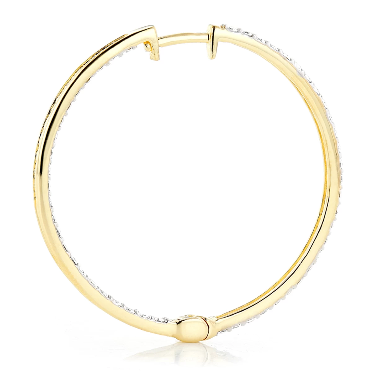 14K Yellow Gold 1 Row Inside Out Diamond Hoop Earrings 3.15ct