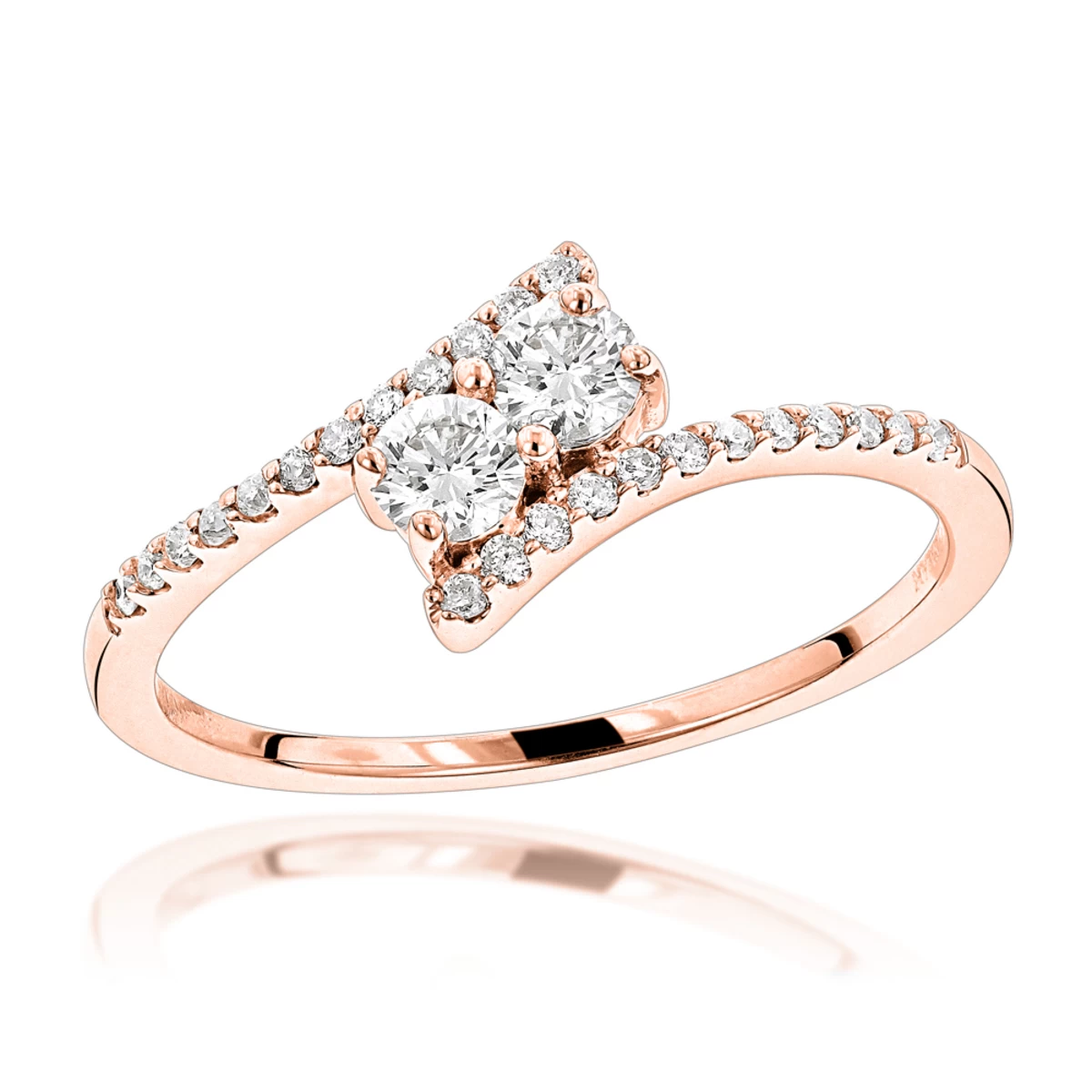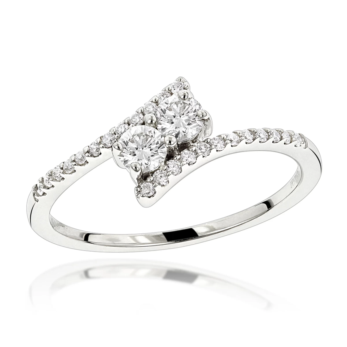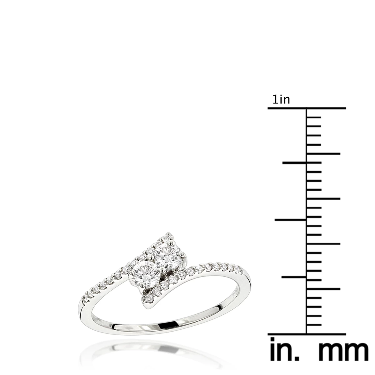 This 14K Gold 2 Stone Diamond Ladies Ring by Luxurman is an elegant diamond ring features 0.4 carats of high quality round dazzling diamonds set in 14K gold base – two sparkling round cut diamond center stones in a classic prong setting in an overlapping love and friendship design paved with diamonds. The two-stone ring has it all: an appealing look and a design with meaning – one gem represents love and one friendship.