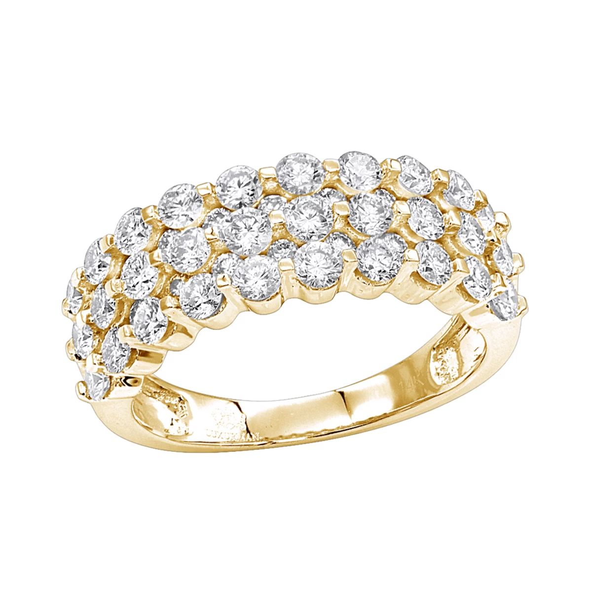 14K Yellow Gold 3 Row Diamond Wedding Band For Women LUXURMAN Anniversary Ring