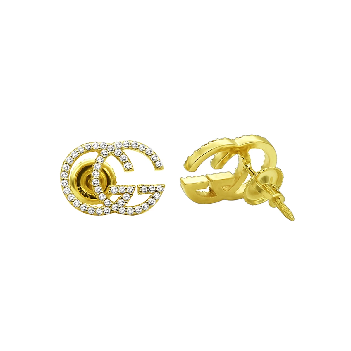 14K Yellow Gold Custom Made Diamond Earrings 0.55ct G Initials Letters Studs