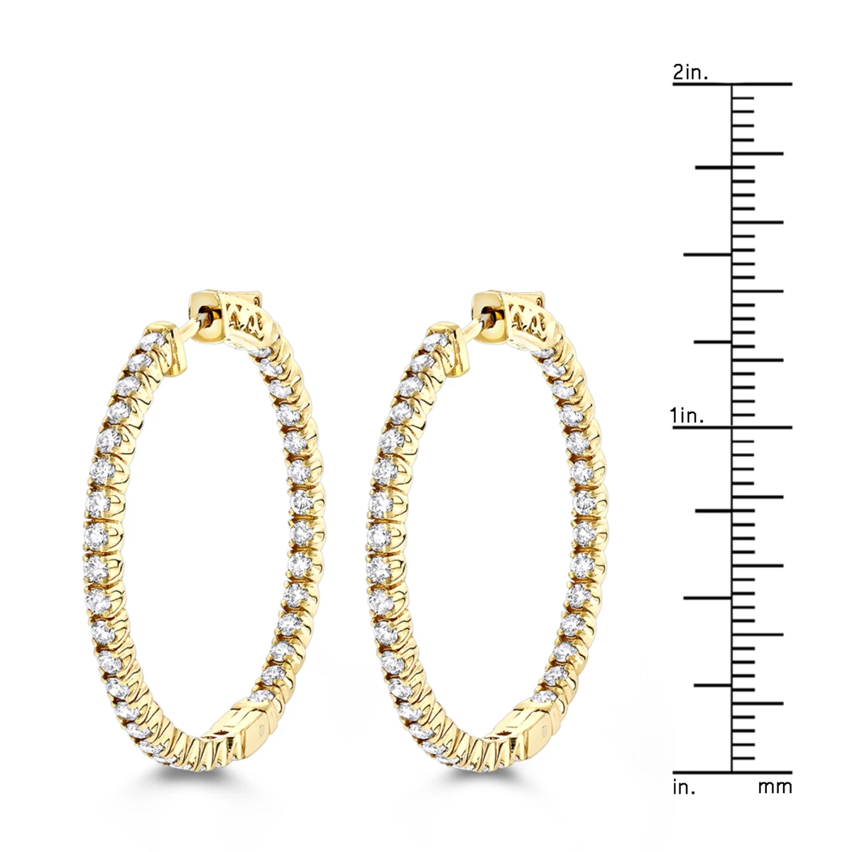 14K Yellow Gold Inside Out Diamond Hoop Earrings For Women By Luxurman 2.1ct