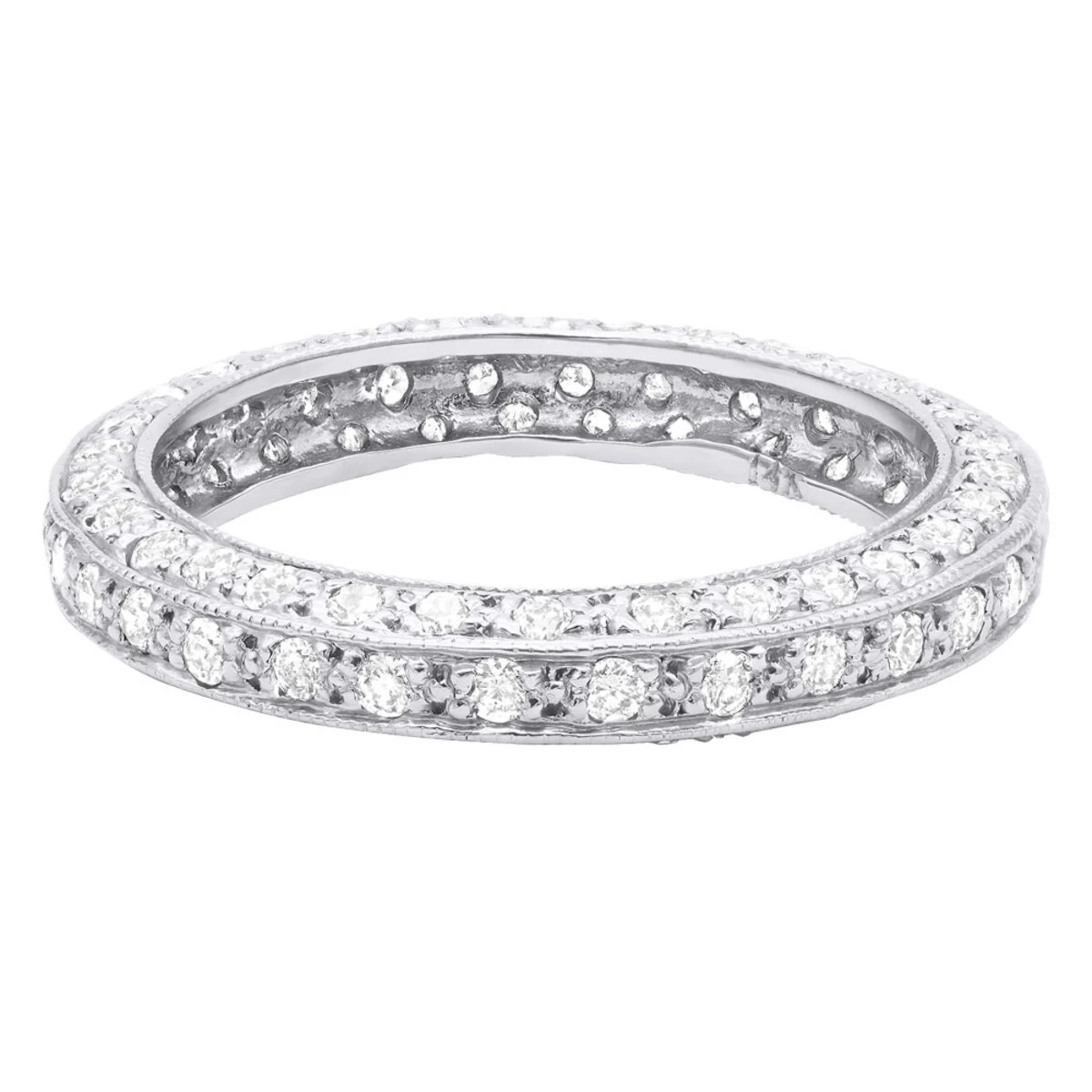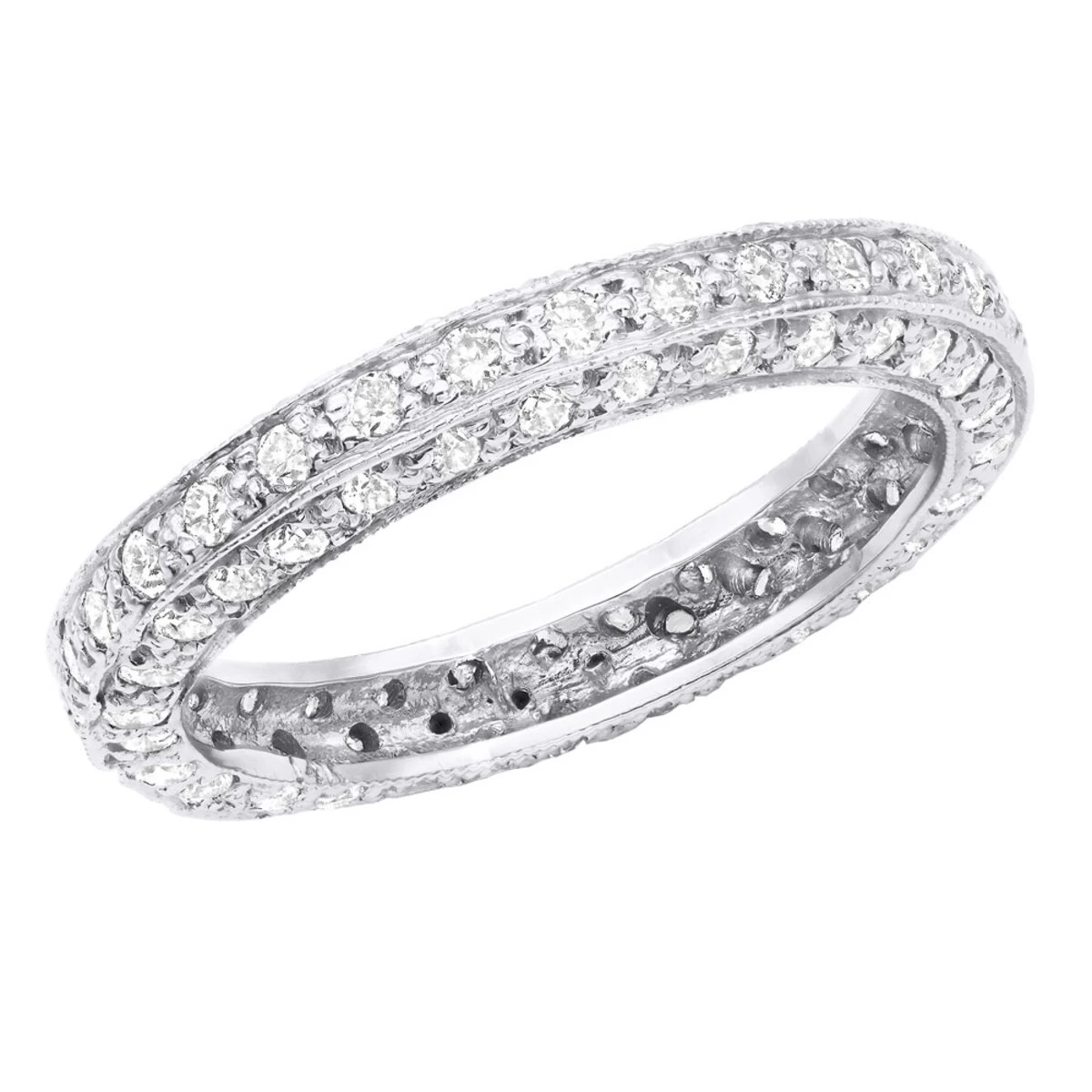 Unique Diamond Wedding Bands: 8 Carat Ladies Pave Diamonds Ring 14K White Gold
