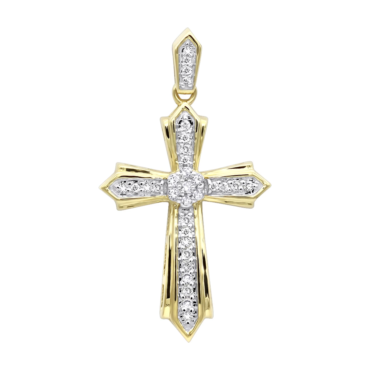 14K Yellow Gold Small Diamond Cross Pendant For Women 0.2ct