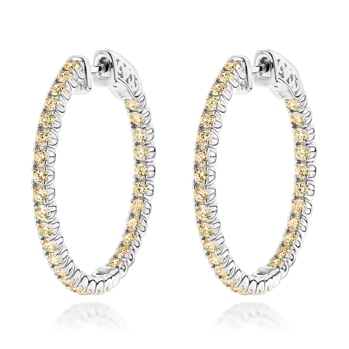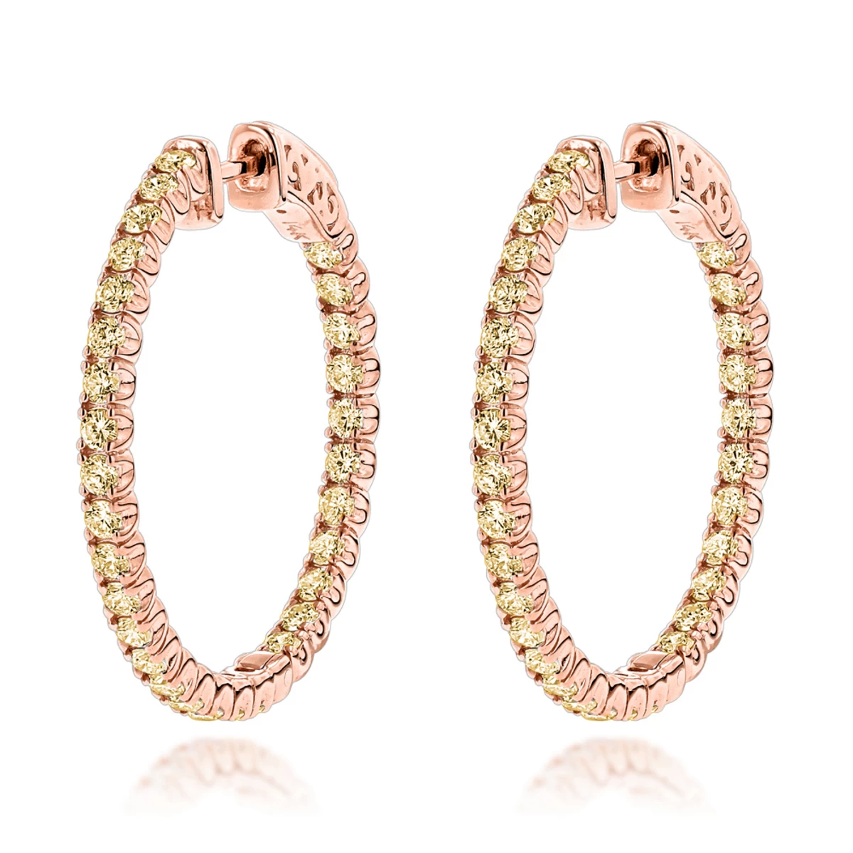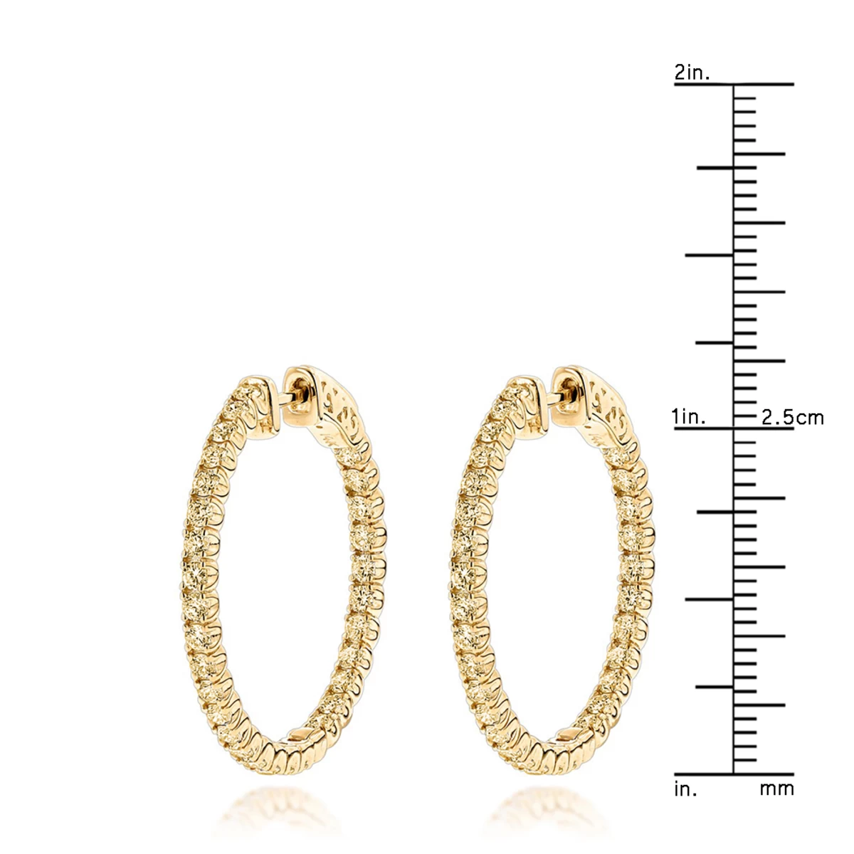 14K Yellow Gold Yellow Diamond Hoop Earrings 2 Carats Inside Out Design By Luxurman